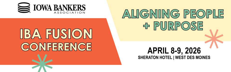 The IBA Fusion Conference brings together HR and marketing leaders from Iowa’s banking industry to explore strategies that strengthen culture, enhance customer engagement, and support organizational growth. Through collaborative sessions, peer discussions, and expert-led insights, attendees will gain practical approaches to developing their workforce, elevating their brand, and advancing their bank’s impact in the communities they serve .The event will feature general sessions alongside specialized HR and Marketing tracks. Be sure to register today at this link!